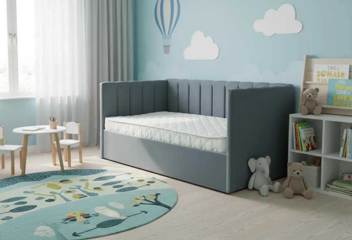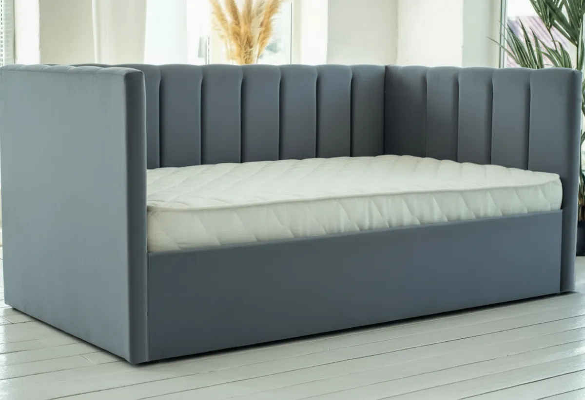 Основные особенности кровати:Спальное место: 90×200 см — оптимальный размер, подходящий как для детей, так и для подростков. Подъемный механизм: В комплекте идёт удобный механизм, который позволяет легко приподнимать спальное место, открывая доступ к просторному отсеку для хранения. Там можно разместить постельное бельё, одеяла, подушки или любимые игрушки, что поможет поддерживать порядок в комнате. Материал обивки: Возможность выбора ткани — Рогожка или Велюр. Оба варианта отличаются практичностью, износостойкостью и приятной текстурой. Универсальный дизайн: Кровать подойдёт как для мальчиков, так и для девочек, а широкий выбор цветов обивки позволит подобрать идеальный оттенок под любой стиль и предпочтения ребёнка.